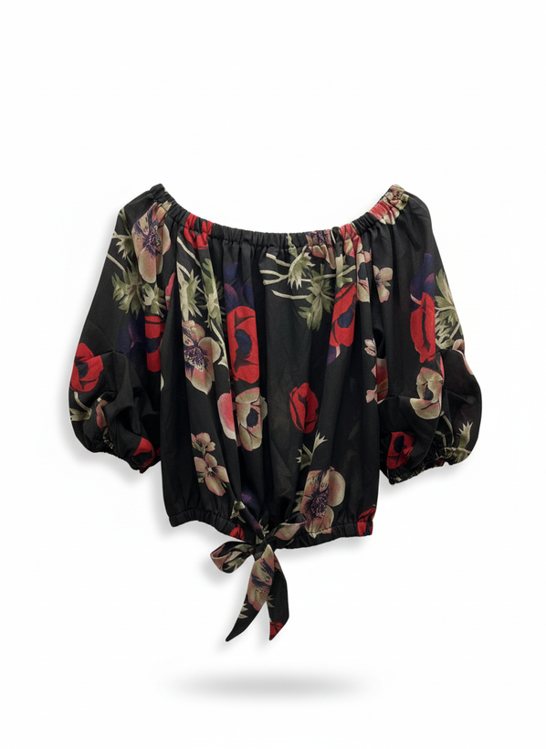 کراپ زنانه گلدار گره ای