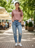 این بلوز بهراحتی با شلوار پارچهای، کتان، جین روشن یا تیره و همچنین دامنهای ساده ست میشود. مناسب استایل رسمی-کژوال و اداری.